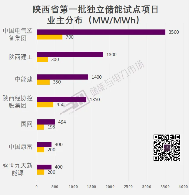 業(yè)主分布上看,9個項目共被7個業(yè)主分獲,中國電氣裝備規(guī)模最大,達(dá)到0.7GW/3.5GWh,陜西建工、中能建緊隨其后,獲得儲能項目規(guī)模分別為0.3GW/1.8GWh、0.35GW/1.4GWh。